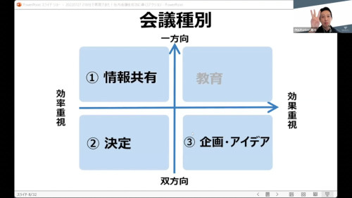 「アイデア出し会議」と「意思決定会議」を分けるだけで、なんとみなさんの社内会議は11パーセント減ります。そういうことなんですよ。事前の整理が必要なんです。