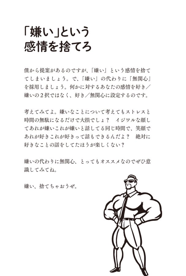 僕から提案があるのですが、「嫌い」という感情を捨ててしまいましょう。で、「嫌い」の代わりに「無関心」を採用しましょう。何かに対するあなたの感情を好き/嫌いの2択ではなく、好き/無関心に設定するのです。