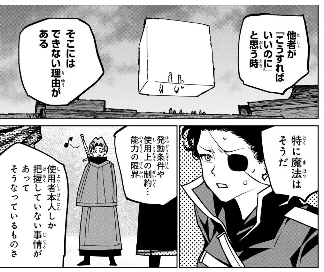 「特に魔法はそうだ。発動条件や使用上の制約…能力の限界。使用者本人しか把握していない事情があってそうなっているものさ」