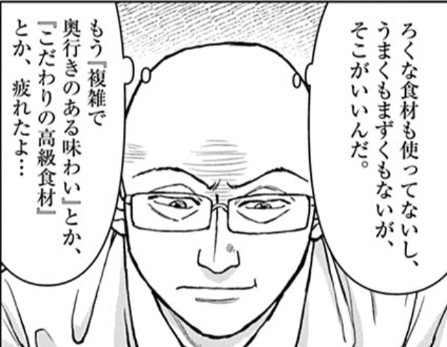 「もう『複雑で奥行きのある味わい』とか、『こだわりの高級食材』とか、疲れたよ…」