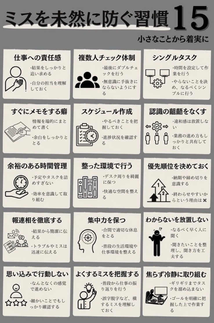 ミスを未然に防ぐ習慣 投稿日: 2024-10-272024-11-04 投稿者: jsaito 引用元:https://nishiga8.tumblr.com/post/765303863260708864