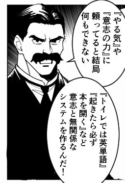 「トイレでは英単語」「起きたら必ず本を開く」など意志と無関係なシステムを作るんだ!