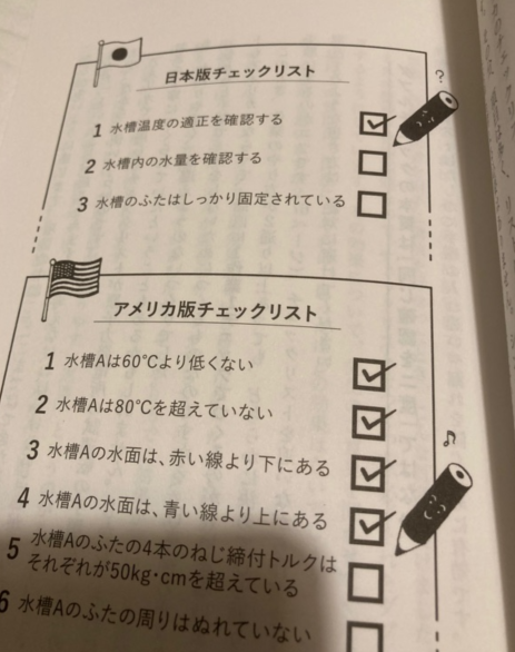 よく紹介させて頂く「日本とアメリカのチェックリストの違い」というのは、まさにこの話。