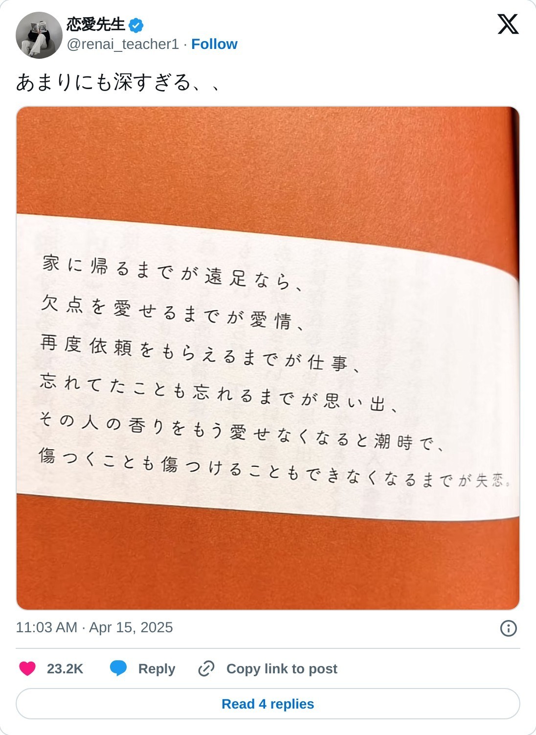 欠点を愛せるまでが愛情、 再度依頼をもらえるまでが仕事、 忘れてたことも忘れられるまでが思い出、