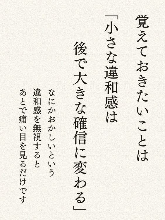 なにかおかしいという 違和感を無視すると あとで痛い目を見るだけです
