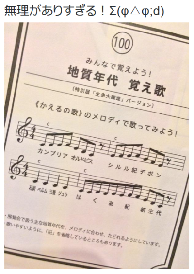 無理がありすぎる地質年代覚え歌 投稿日: 2018-12-142018-12-17 投稿者: jsaito 引用元:https://twitter.com/T_SONOYAMA/status/634176110167613441/photo/1