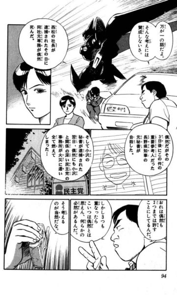 男2: …だがその3日後にこの件の重要参考人だった民自党高知事の元秘書が自殺した。
