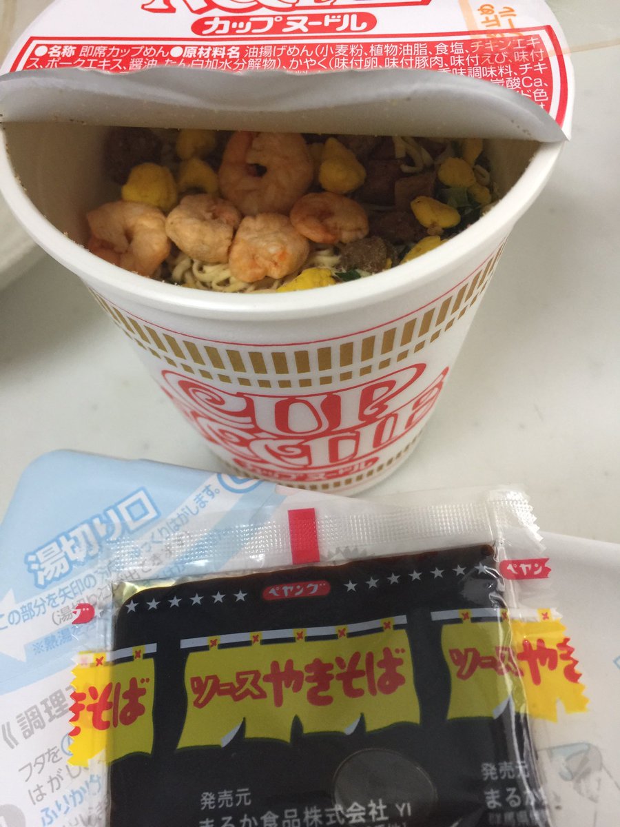 話題の「ペヤングソース焼きそば」の出汁で「日清カップヌードル」を作る、をやってみました。長男は「違う!なんか美味い!」と喜んでいました。確かに、コクが増します。罪悪感も増します。