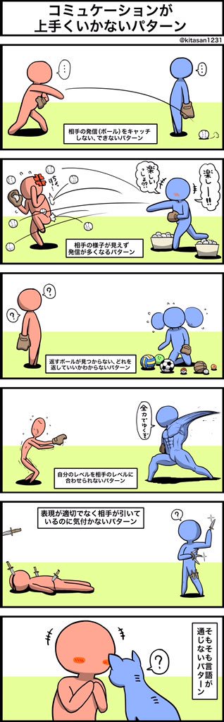 コミュニケーションが上手くいかない時のパターン 投稿日: 2019-07-202019-07-20 投稿者: jsaito 引用元:https://twitter.com/KITASAN1231/status/665494502673526784